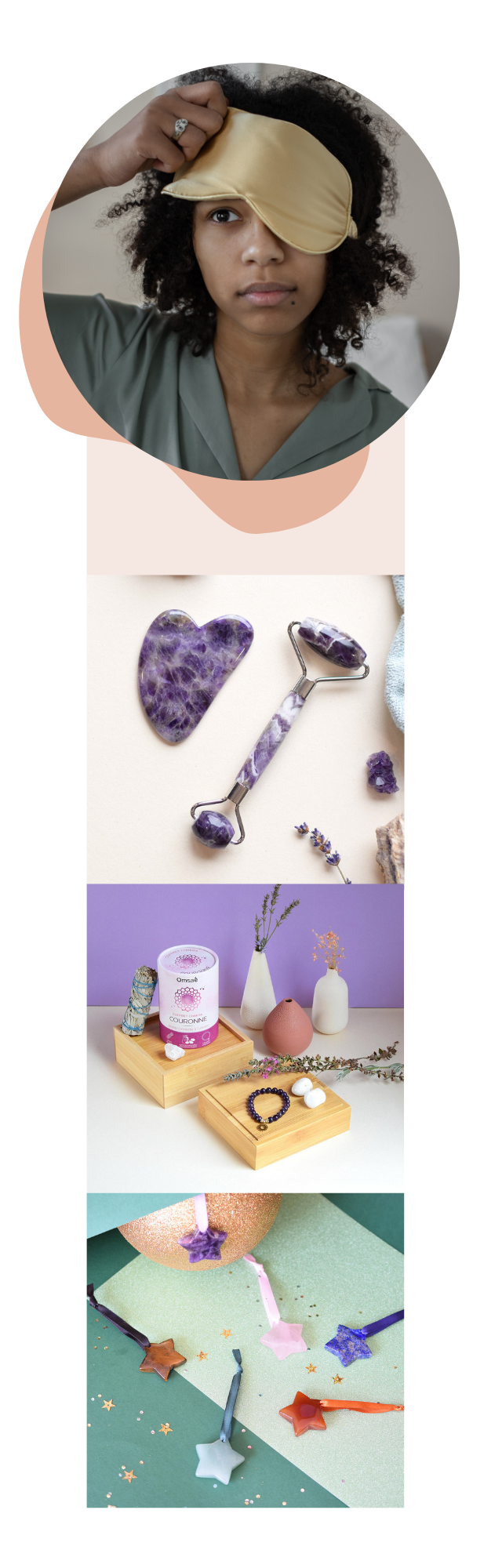 ➡️ Comment les utiliser : vous pouvez les placer près de votre lit, dans votre table de chevet, ou les tenir quelques minutes en main pendant vos exercices de respiration avant le coucher. L’idée est de créer un petit rituel sensoriel et symbolique pour signaler à votre corps qu’il est temps de se relâcher.