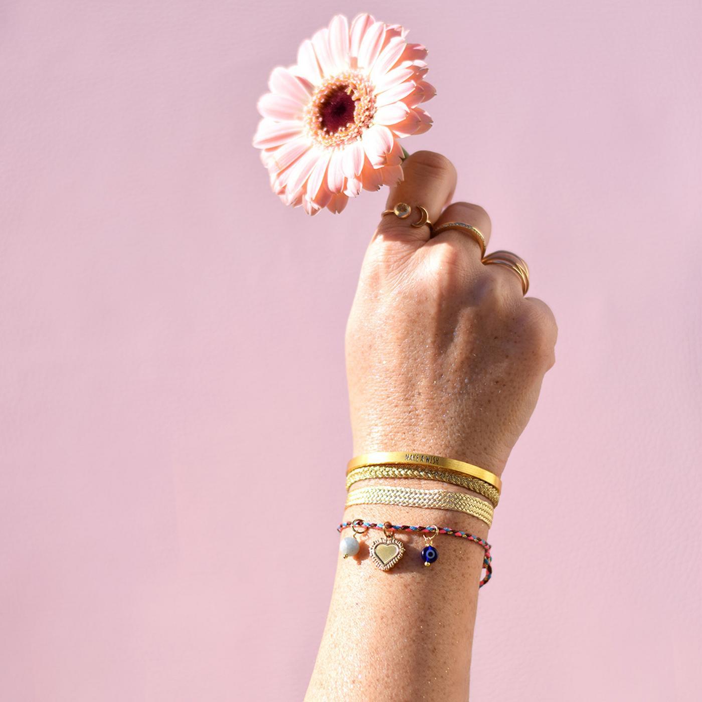 Véritable concentré de bonnes énergies, ce bracelet gri-gri est un cocktail coloré de symboles porte-bonheur. Conçu pour vous accompagner au quotidien, il vous apportera protection et énergies positives. Emblème d’amour infini et de bienveillance, son cœur rayonnant se marie parfaitement avec les vibrations de l’aigue-marine, favorisant la douceur et la bienveillance.