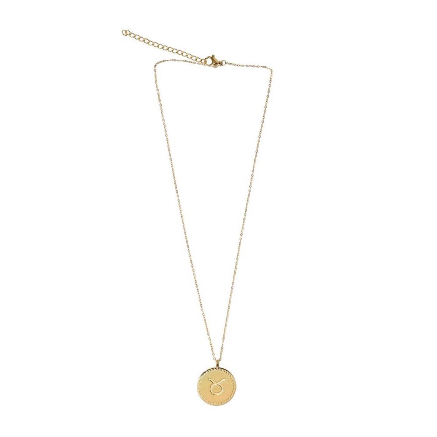 Collier composé d'une médaille gravée et d'une chaîne en acier inoxydable. Médaille gravée au recto et au verso avec le signe et la constellation Taureau. Chaîne ajustable d'une longueur de 40-45 cm.