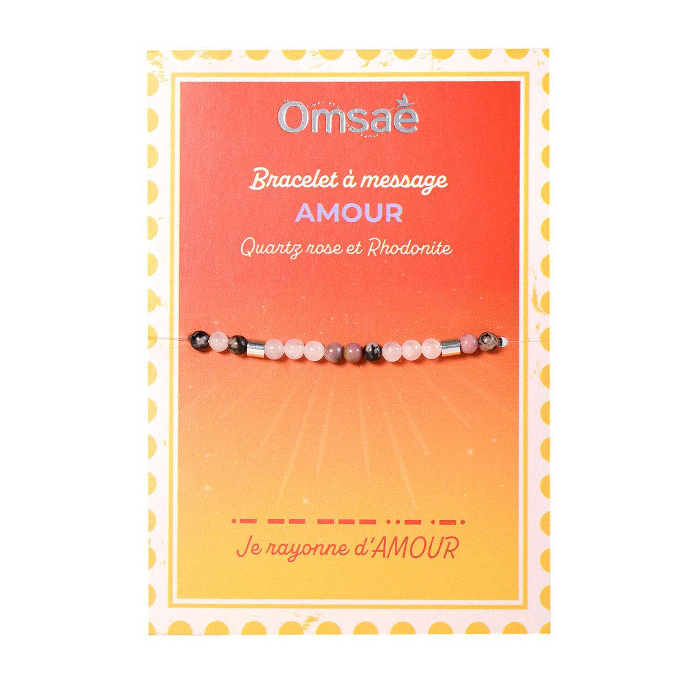 Porteur d’un message intime et discret codé par le rythme des perles, ce bracelet vous aidera à faire rayonner l'amour autour de vous. Les énergies positives des pierres viennent résonner et amplifier le message d'amour. Le quartz rose développe la confiance en soi et l'ouverture à l'autre. La rhodonite apporte tendresse et douceur. Portez votre bracelet au poignet pour manifester votre intention et vous charger de la force de votre mantra "Je rayonne d'AMOUR".