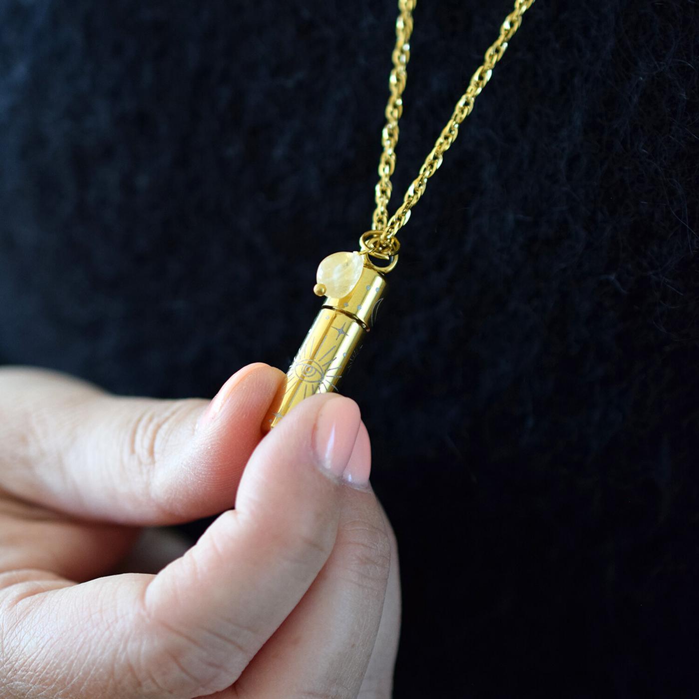 Glissez vos rêves les plus chers au creux de ce médaillon et laissez l’amour éclore dans votre vie. Ce sautoir est un écrin secret où vos intentions prennent vie. La pierre de quartz rose, symbole d'amour et de douceur, diffuse une énergie bienveillante qui apaise le cœur et favorise les connexions sincères. Elle amplifiera votre intention et vous guidera vers des relations empreintes d’harmonie. Portez ce bijou près de vous et confiez-lui vos souhaits. Chaque jour, il se chargera d’énergies positives pour accompagner leur réalisation.