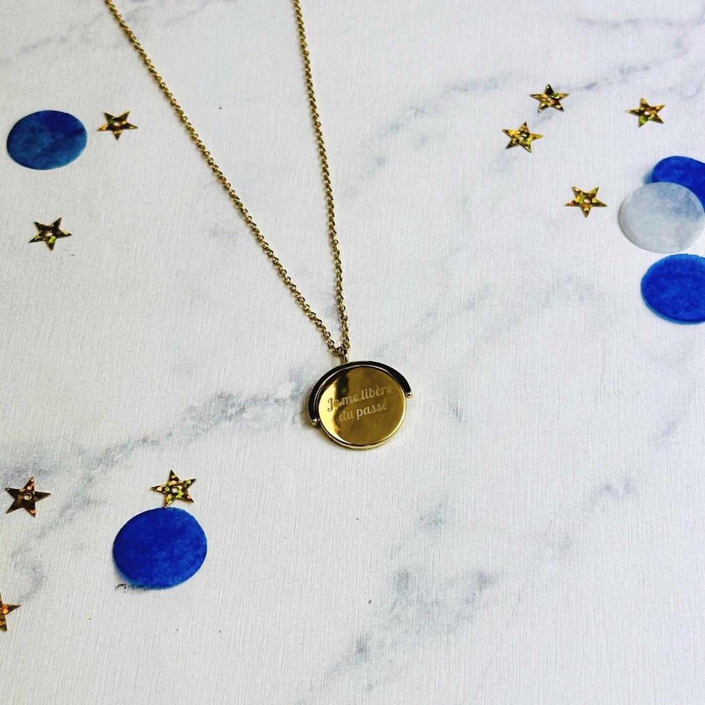 Libérez-vous de ce qui vous retient et laissez la spontanéité guider vos pas. Ce collier est un rappel précieux que chaque instant est une opportunité de se réinventer. La malachite, pierre de clairvoyance et de protection, diffuse une énergie optimiste et libératrice. Mise en lumière par l’étoile et amplifiée par le mantra gravé, vous serez guidée vers la guérison et l'émancipation. Portez ce collier comme un talisman et laissez sa vibration vous envelopper. Chaque jour, il vous accompagnera pour vivre l'instant présent et vous libérer du passé.