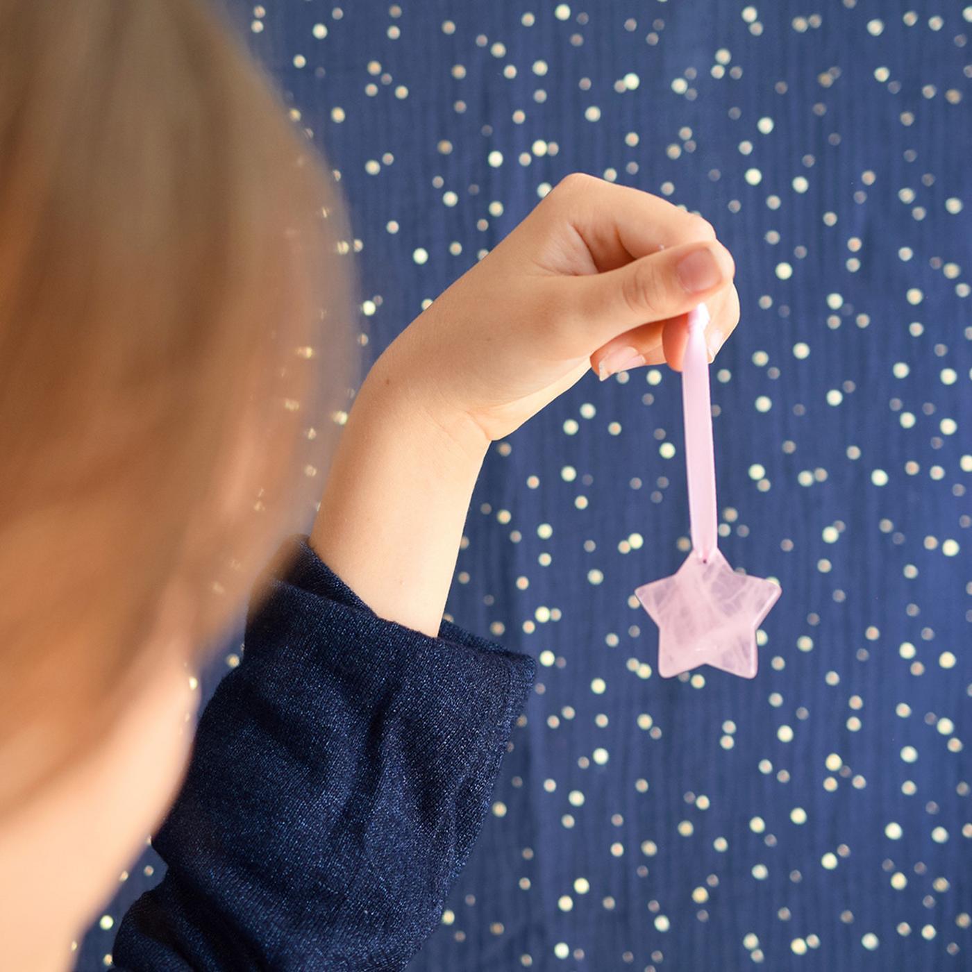 Tel un guide, cette étoile saura t'indiquer le chemin à suivre pour que tu te charges de l'amour dont tu as besoin... Elle est remplie d’énergie positive pour t’aider à croire en tes rêves et à envoyer tes souhaits à l'univers. Le quartz rose, pierre de l'amour inconditionnel, t’aide à ouvrir ton cœur et à avancer avec douceur et sérénité. Laisse-toi guider par la magie de cette étoile porte-bonheur, fais un vœu en la tenant dans ta main et laisse la magie opérer…