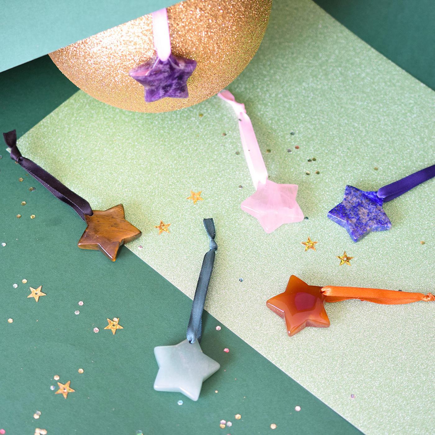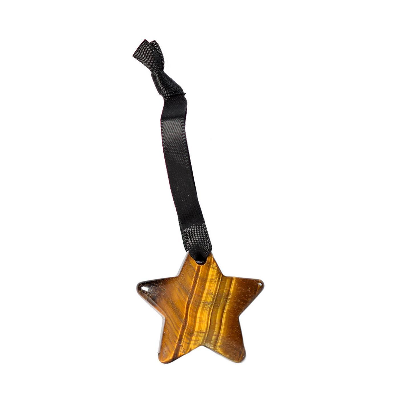 Étoile à vœux Courage. Pierre naturelle d'œil de tigre origine Afrique du Sud. Ruban coloré.