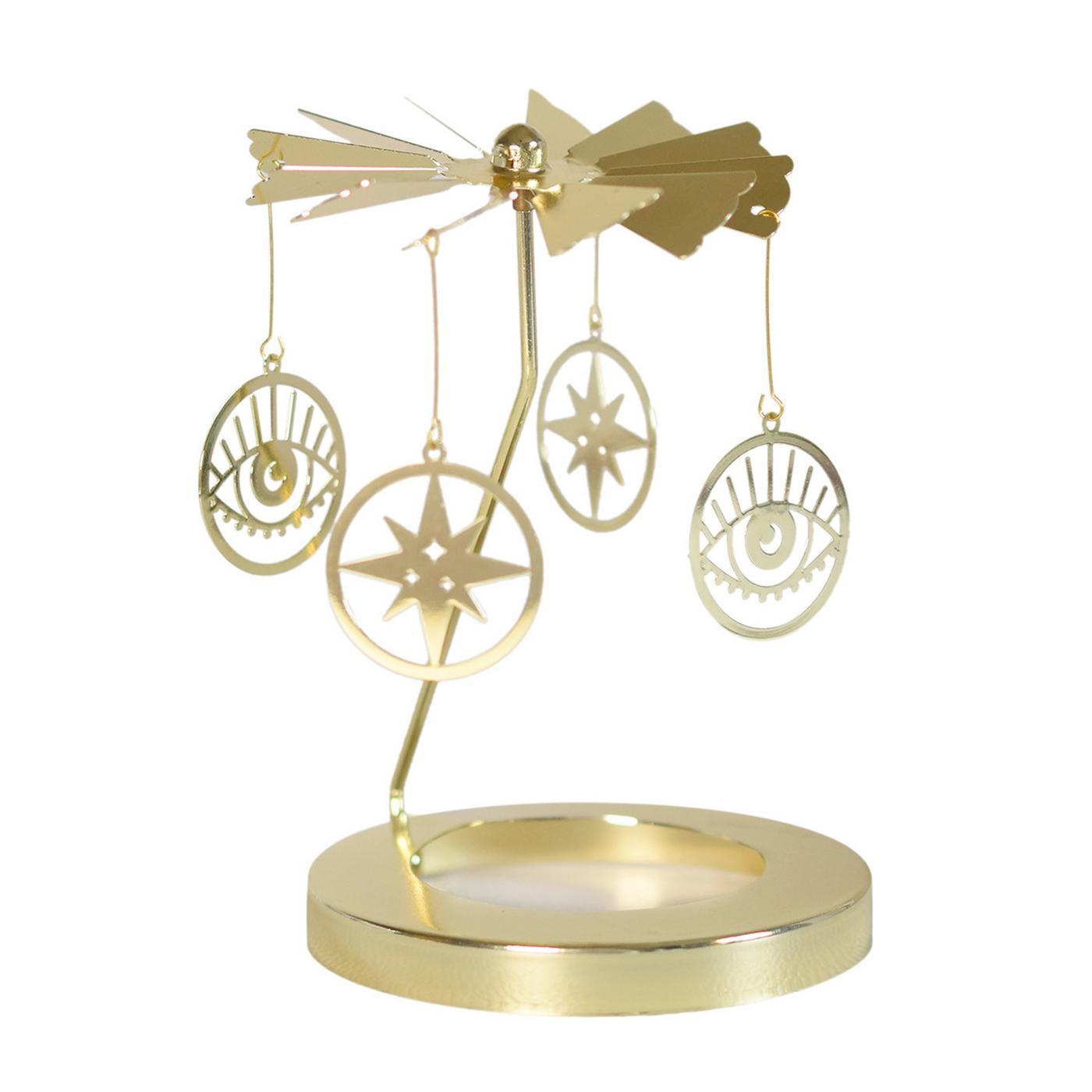 Laissez l'énergie divine protéger votre espace... Placé au-dessus de votre bougie, ce carrousel enchanteur se met en mouvement sous l’effet de la chaleur, créant une ambiance apaisante et sécurisante dans votre intérieur. Ses amulettes, composées d'yeux protecteurs et d’étoiles, célèbrent la protection sous toutes ses formes : la force intérieure, la sécurité émotionnelle et l’équilibre. Posez une intention lorsque vous allumez votre bougie, chaque mouvement de votre carrousel viendra diffuser une énergie bienveillante, formant un cocon protecteur autour de vous. Une invitation à savourer un instant de calme, bercé.e par des vibrations positives, au fil d’un mouvement hypnotique et réconfortant.