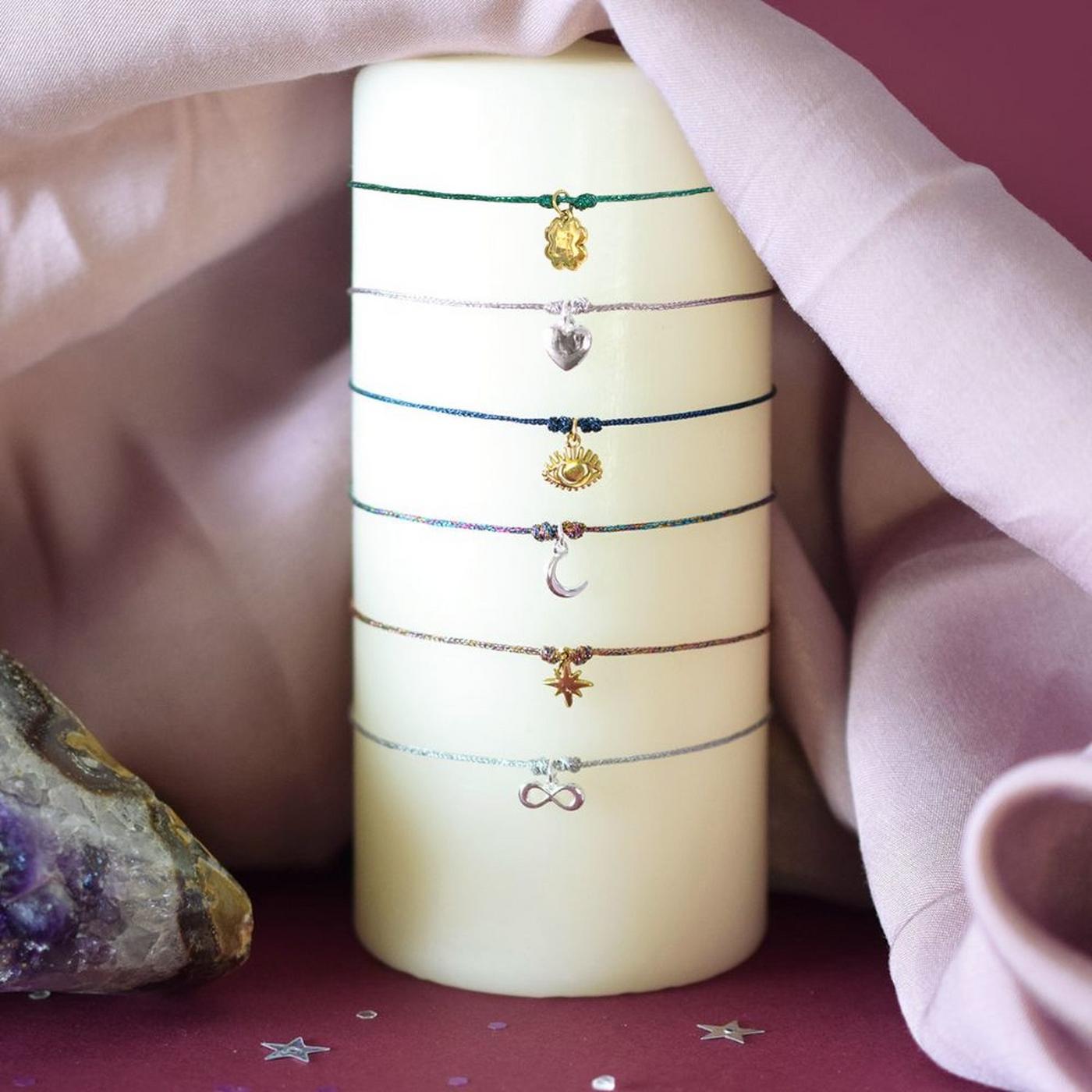 Bracelet à vœux Intuition. Cordon en polyester ajustable. Charm en acier inoxydable.