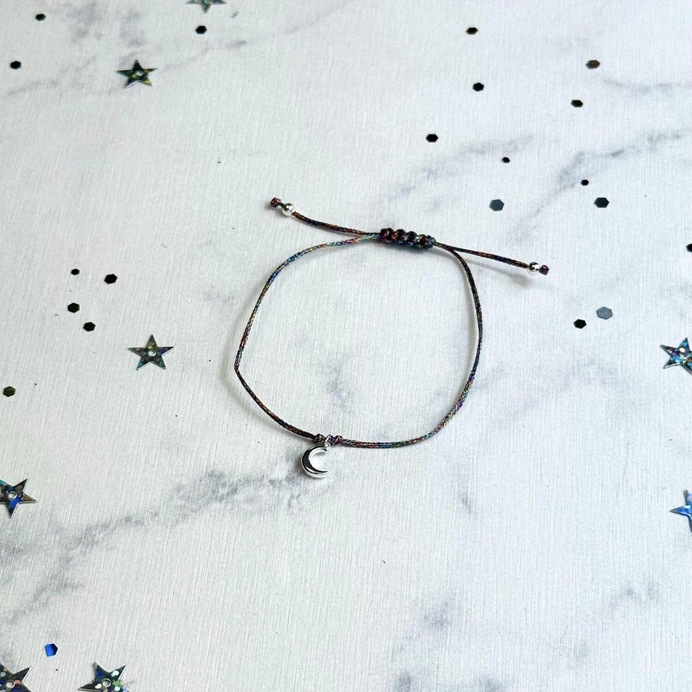 Bracelet à vœux Renouveau. Cordon en polyester ajustable. Charm en acier inoxydable.