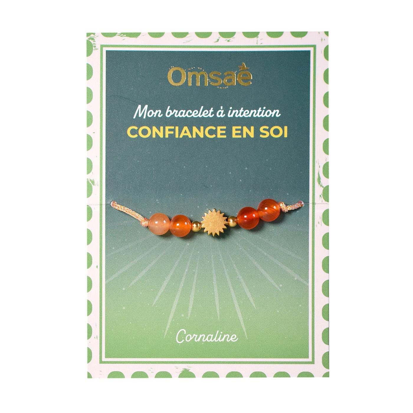 Bracelet à intention Confiance en soi. Pierre naturelle de cornaline origine Brésil, charm et séparateurs en acier inoxydable. Cordon en polyester. Taille ajustable. Adapté aux poignets fins.