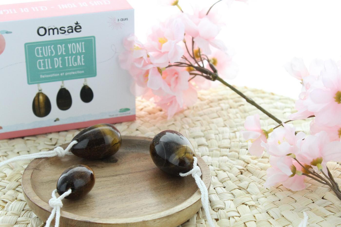 Coffret comprenant 3 oeufs de Yoni en pierre naturelle d'oeil de tigre. Oeufs de tailles différentes destinés aux femmes souhaitant développer leur équilibre intérieur, la confiance et la vitalité intime. Un grand, adapté aux femmes qui ont déjà eu un enfant ou pour commencer la pratique. Un moyen, conseillé pour les femmes qui n'ont pas eu d'enfant. Un petit, à privilégier pour les très jeunes femmes et pour les femmes averties qui ont une pratique avancée. Hérité des secrets féminins chinois ancestraux, l'oeuf de Yoni est utilisé principalement pour tonifier les muscles du périnée. L'oeil de tigre, sélectionné pour ses vertus protectrices, viendra renforcer les bienfaits de l'utilisation des oeufs de Yoni.