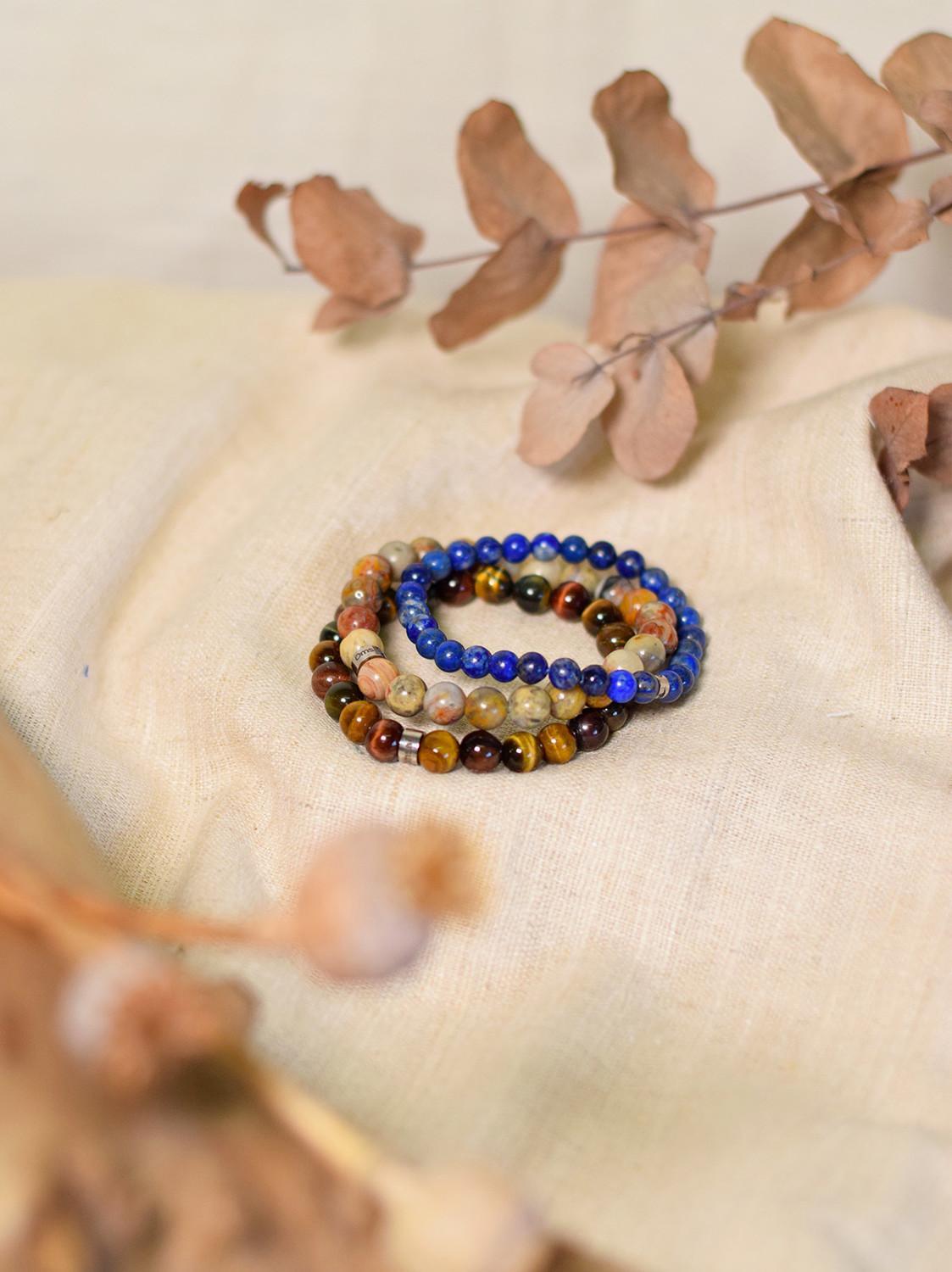 Bracelet élastique composé de perles en pierre naturelle d'oeil de tigre. Pierre de protection, l'œil de tigre crée autour de soi un miroir qui renvoie les énergies négatives. Il aide à dépasser les peurs et redonne confiance en soi.