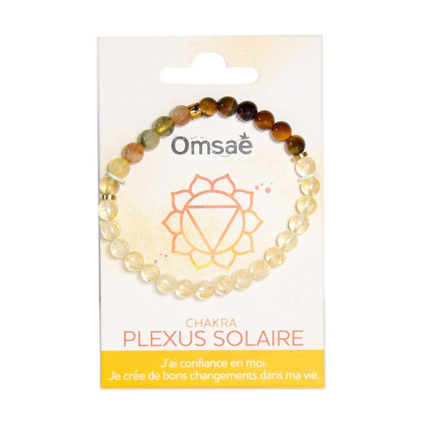 Situé légèrement au-dessus du nombril, le chakra du plexus solaire représente l'estime de soi et le pouvoir personnel. Lorsque ce chakra est harmonisé, vous avez confiance en vous et allez de l'avant. Soigneusement sélectionnées parce qu'elles apportent joie de vivre et optimisme, les perles de citrine, d'oeil de tigre et de quartz rutile viendront vibrer en harmonie avec votre chakra du plexus solaire. Portez ce bracelet à votre poignet, répétez plusieurs fois l'affirmation positive inscrite sur cette carte pour harmoniser votre chakra du plexus solaire, développer l'estime que vous avez de vous-même et vous donner du courage.