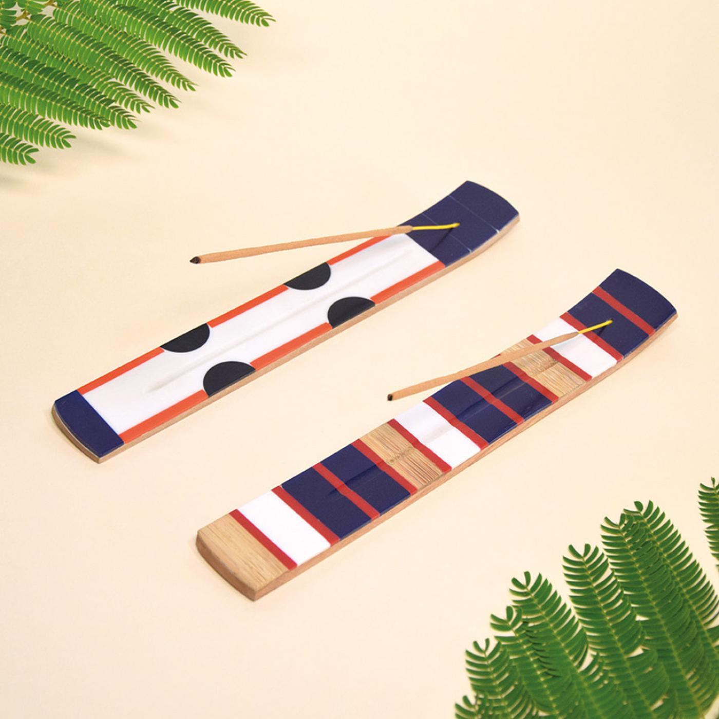 Porte-encens en bois et résine avec motifs rayures adapté aux bâtons d'encens. Créer une ambiance olfactive douce et apaisante propice à la relaxation en sélectionnant un bâton d'encens inspirant…