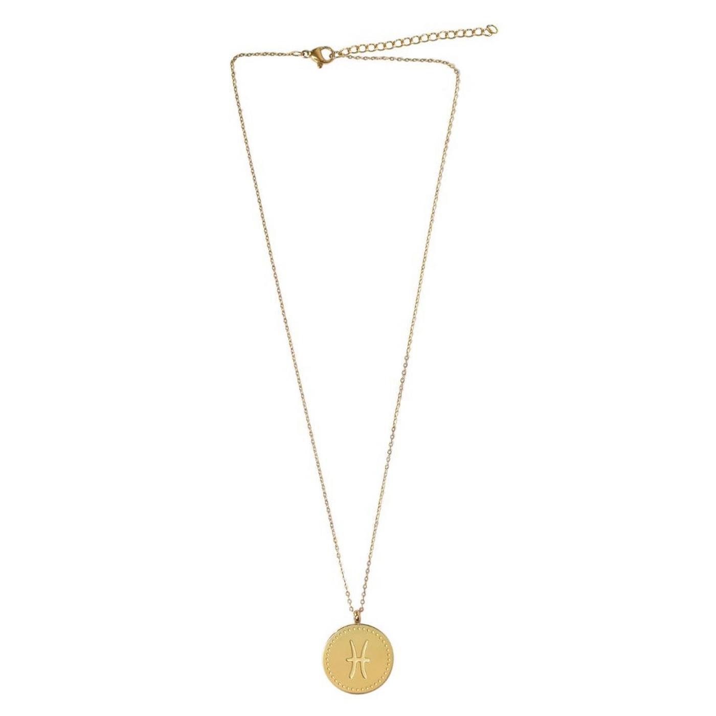 Collier composé d'une médaille gravée et d'une chaîne en acier inoxydable. Médaille gravée au recto et au verso avec le signe et la constellation Poisson. Chaîne ajustable d'une longueur de 40-45 cm.
