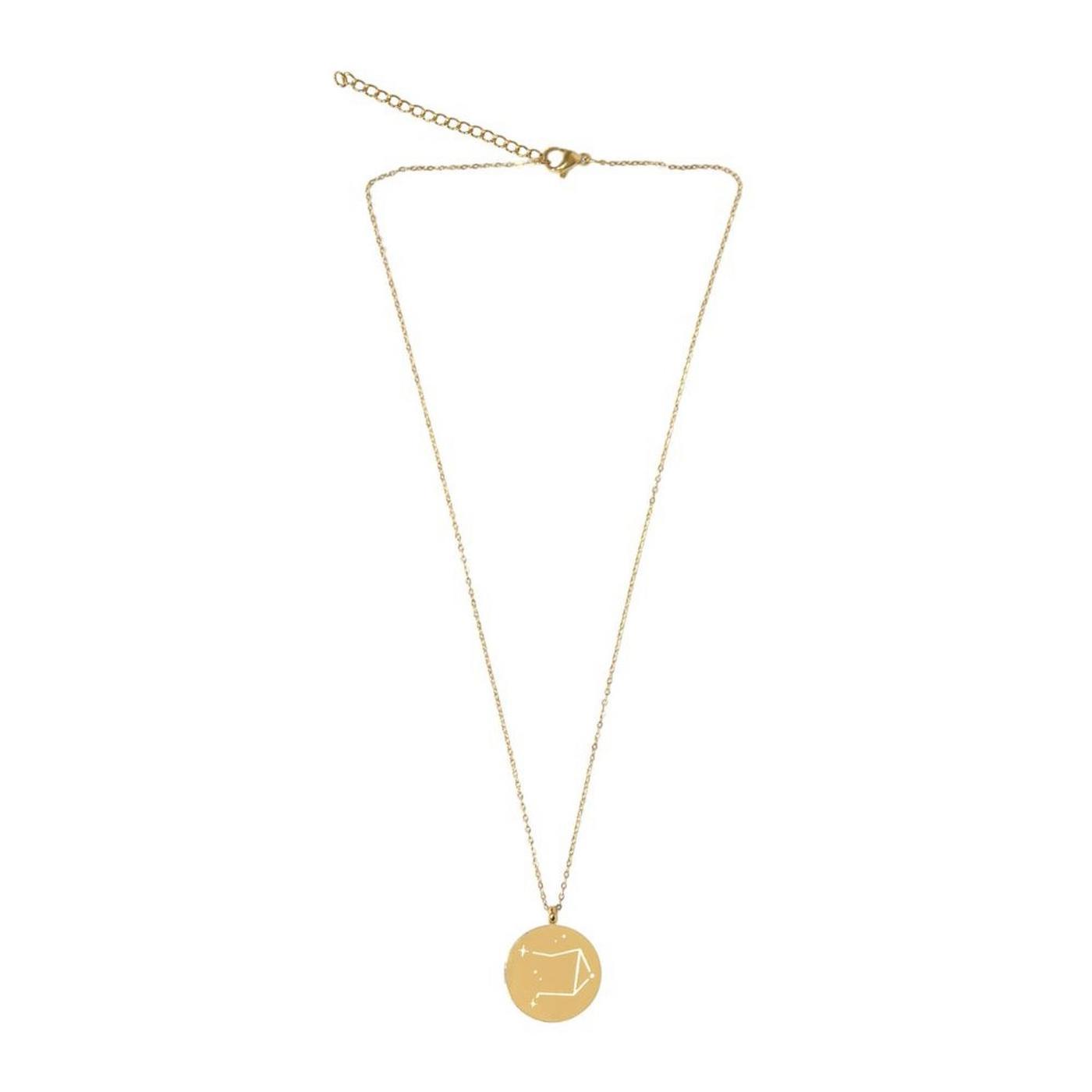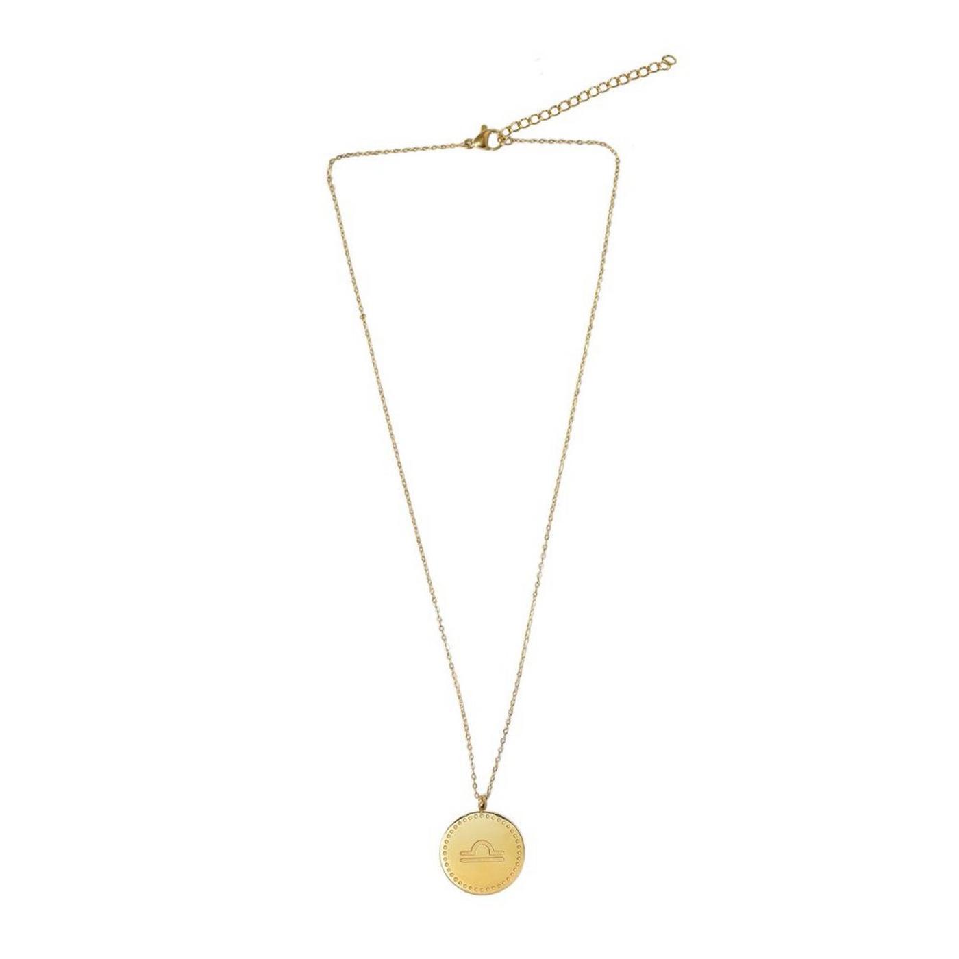 Collier composé d'une médaille gravée et d'une chaîne en acier inoxydable. Médaille gravée au recto et au verso avec le signe et la constellation Balance. Chaîne ajustable d'une longueur de 40-45 cm.