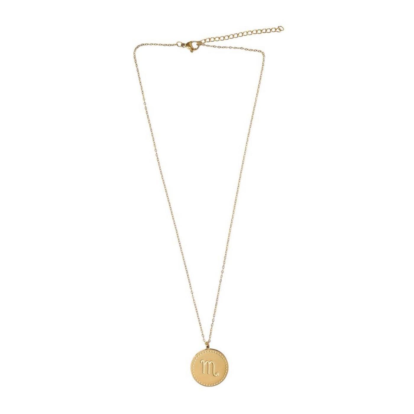 Collier composé d'une médaille gravée et d'une chaîne en acier inoxydable. Médaille gravée au recto et au verso avec le signe et la constellation Scorpion. Chaîne ajustable d'une longueur de 40-45 cm.